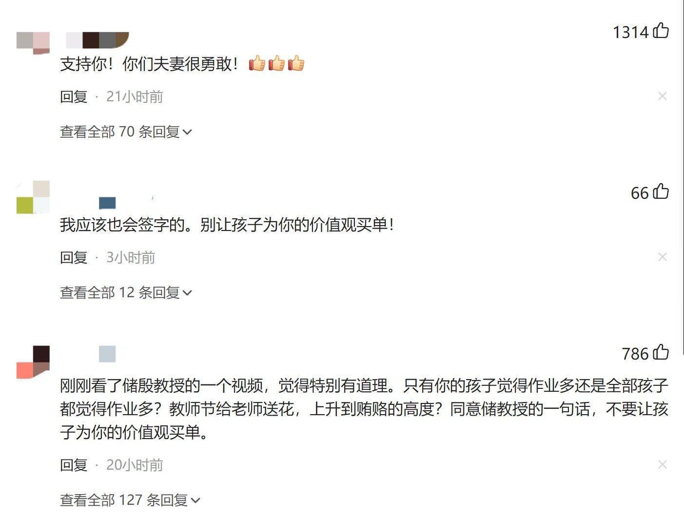 近日,一则家长因为拒绝“鸡娃”,反而被其同班级其他同学家长排挤孤立的事情上了热搜,新闻一出,引发众人讨论。 事情发生在贵州当地一所“顶流”小学,因妞妞妈反对教师布置过多书面作业,7岁的妞妞被全班39名家长中的37人联名“请愿”转学。究其原因不是妞妞违反班级纪律影响他人学习,而是妞妞妈妈与班主任在教育理念上有了冲突。事情发酵后,涉事教师被给予全区通报批评、撤销年级组长职务、取消“市级名班主任”称号的决定。 这个事件也引起不少网友的讨论,大部分网友都在替妞妞“鸣不平”,但还是有相当一部分声音替涉事教师“叫屈”,认为妞妞妈反对“鸡娃”搞坏了班风,搞坏了教育。 10月19日,妞妞妈选择再度发声,在这篇名为“妞妈的自白”中,这位母亲讲述了反对“鸡娃”的心路历程。 在她眼中,“格格不入”的自己,是在拒绝做精致利己主义者,体现了知识分子的家国情怀和责任担当。她在文章末尾强调,“踩踏式教育、刷题式训练所带来的只能少数人胜出的结果,对国家与民族的发展是不利的”“我们需要教育好每一个孩子,让每一个孩子都能按照自身特点健康成长,茁壮成才。” 出人意料的是,这篇“自白”非但没能回应某些网友的质疑,反倒是添油炽薪。 评论区网友自选战队,分为泾渭分明的两派。由此可见,“双减”政策下许多家长的矛盾心态,犹如海面上的冰山一角。只消轻轻地撞击,就足以掀起舆论巨浪—— 一部分网友选择支持妞妞妈,为她的勇敢点赞。在他们看来,当多数人对教育“潜规则”麻木默许、顺从的时候,只有更多人站出来“不妥协”,才能让学校回归教书育人的本心。家长少整些“幺蛾子”,才能让孩子拥有快乐的童年。 还有一部分家长则站到了“鸡娃正义”这边,批评妞妞妈“为人太作”“情商低、一根筋”“过于偏执”“不擅长沟通”。 总结概括反对者的中心思想,其实就是一句话:你不想“卷”可以,别拉着大家一起“不卷”。