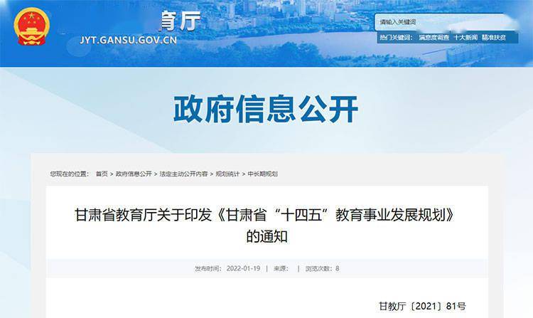 甘肃省教育厅日前出台《甘肃省“十四五”教育事业发展规划》,其中提到,支持兰州大学建设世界一流大学,支持西北民族大学建成特色鲜明的国内一流大学;支持西北师范大学、兰州理工大学、兰州交通大学、甘肃农业大学、兰州财经大学、甘肃中医药大学、甘肃政法大学等省属高校建成国内同类院校高水平大学。